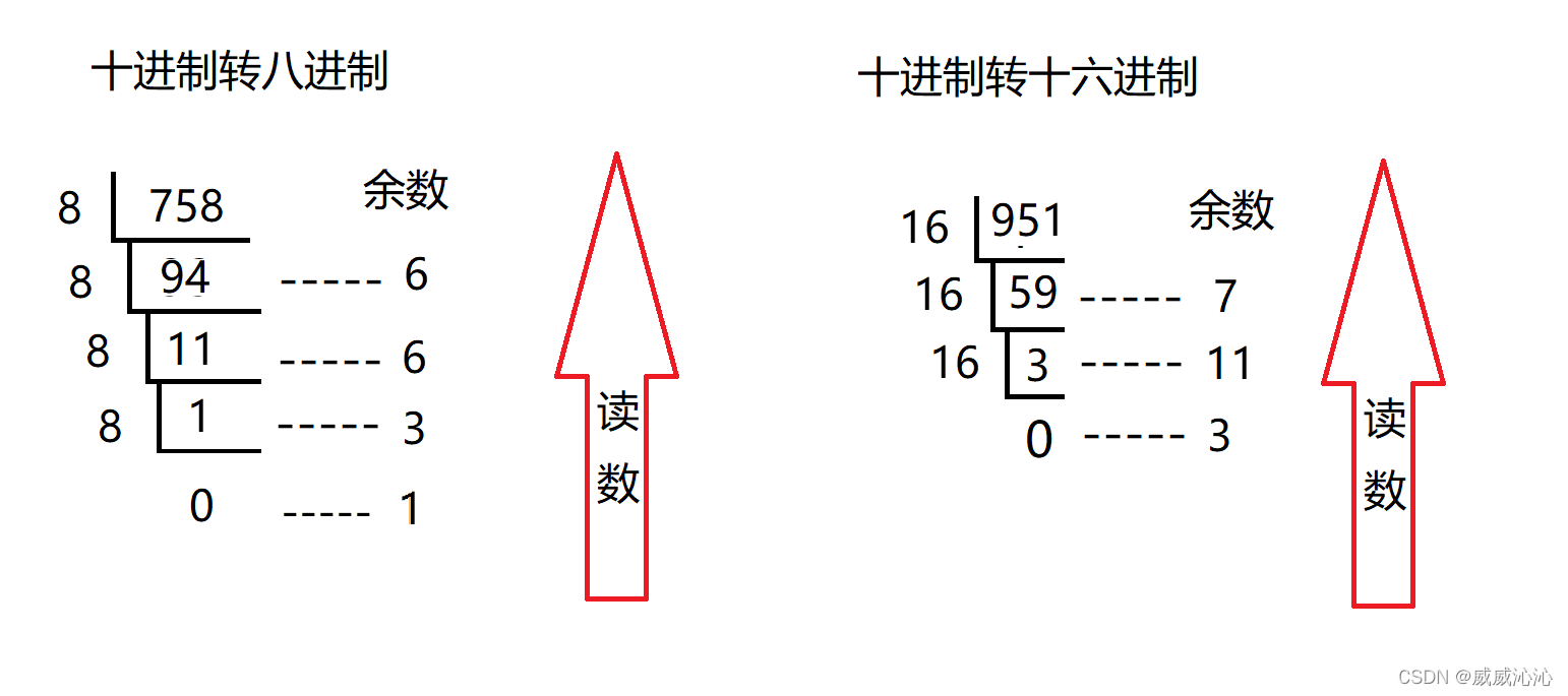 同理十进制转八进制、十六进制也是一样的做法,大家可以尝试做一下例题,熟悉掌握计算流程